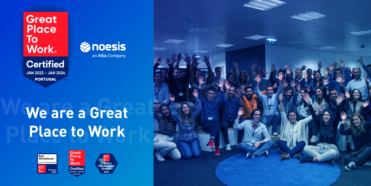 Aumentámos a taxa de resposta para 77% e o Trust Index©, que se fixou em 86%. Com este resultado, a Noesis é uma empresa Certificada pela Great Place to Work® Portugal que reconheceu, mais uma vez, a nossa cultura de alta confiança e o nosso bom ambiente de trabalho.